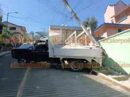 Una probable falla mecánica en el sistema de frenado provocó que un camión de carga perdiera el control y terminara impactándose contra un poste de concreto y la barda de un domicilio particular la tarde de este sábado, lo que provocó la movilización de cuerpos de emergencia en la colonia Comercio de esta capital.