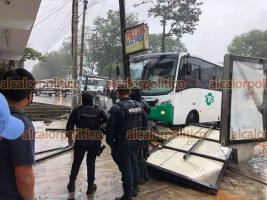 Un aparatoso accidente ocurrió la tarde de este sábado sobre la avenida Lázaro Cárdenas, cuando el conductor de un camión de la línea TRS perdió el control y chocó contra una parada de autobús a la altura de La Corona, tres personas resultaron lesionadas.