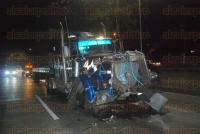 El accidente se registró a las 2:00 horas, cuando el tráiler Kenworth, color azul, placas del Servicios Público Federal, 977-AL-6, de transportes Express, circulaba sobre la avenida Lázaro Cárdenas, en el carril que conduce de Las Trancas-Tesorería.