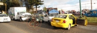 Una camioneta de la compañía “Agua Xallapan”, causó un accidente vial esta mañana en la avenida Lázaro Cárdenas (a la altura de Agua Santa I), donde causó una carambola dañando cuatro vehículos, y resultando tres personas lesionadas.