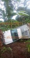 Camioneta de carga volcó fuera del camino en carretera Las Trancas-Coatepec