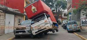 Al rozar los cables, estos se tensionaron hasta el punto de jalar la camioneta hacia un costado, provocando que perdiera el equilibrio. El vehículo terminó recargado sobre una camioneta Toyota de batea que estaba estacionada en el lugar. Aunque no se reportaron personas lesionadas, los daños materiales fueron considerables y el incidente causó desconcierto entre vecinos y transeúntes.
