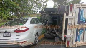 La tarde de este miércoles se registró un choque y volcadura en la carretera Veracruz-Xalapa, justo frente al batallón de El Lencero, a escasos metros del retorno.