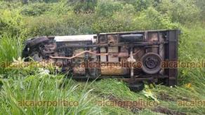 Camioneta derrapó y volcó en carretera Las Trancas-Coatepec