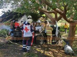 En la autopista Veracruz-Córdoba, a la altura del kilómetro 78, en Medellín de Bravo, una camioneta de tres y media toneladas acabó incrustada contra un árbol, quedando prensados sus ocupantes, muriendo uno.