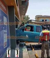 El accidente ocurrió la tarde de este martes, cuando el conductor de la camioneta, al momento de estacionarse, pisó por error el acelerador, lo que provocó que la unidad subiera una pequeña banqueta y finalmente rompiera los cristales, quedando parte del vehículo en el interior de la tienda.