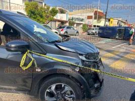 Camioneta vuelca tras ser impactada por otro vehículo, en Veracruz Puerto