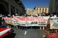 Campesinos provenientes del municipio de Jesús Carranza, llegaron temprano a las escaleras de la Catedral, para manifestarse exigiendo justicia ya que el ejido de Suchilapa del Río ha sido invadido.