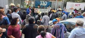 Productores agrícolas de los municipios de Xalapa, Jilotepec y Emiliano Zapata se manifestaron en las oficinas de la Representación estatal de la Secretaría de Comunicaciones y Transportes (SCT) en el Estado de Veracruz, para exigir el pago de las indemnizaciones por las afectaciones que sufrieron con la construcción del libramiento Xalapa-Perote.