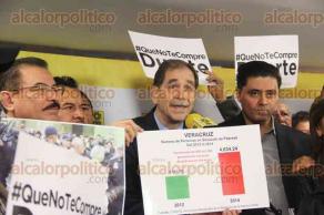 Indicó que con base en las encuestas los únicos que le pueden ganar al PRI del gobernador Duarte son los aliancistas PAN y PRD, "yo no voy a ponerme a defender a Miguel Ángel Yunes... ni siquiera es el candidato del PAN".