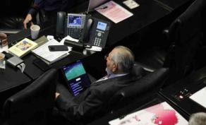 El senador y coordinador de MORENA en la Cámara Alta, Adán Augusto López, fue captado este miércoles observando el partido de futbol del Barcelona vs PSG durante la comparecencia del secretario de Hacienda Édgar Amador Zamora, en sesión del pleno.