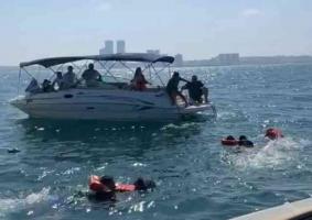 Videos grabados por los presentes evidencian el momento exacto en que empieza a hundirse el barco de recreo privado hasta terminar volcado, obligando a sus tripulantes a arrojarse al mar y luego nadar hacia las embarcaciones cercanas.