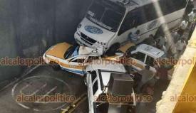 Un taxista prensado y al menos tres personas más resultaron lesionadas durante una carambola registrada la mañana de este martes a la altura del puente a desnivel, donde chocaron dos taxis, un autobús de pasaje, una camioneta y una motocicleta.