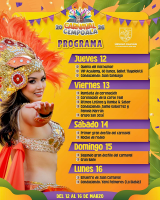 Las festividades arrancarán el jueves 12 de marzo con la tradicional Quema del Mal Humor, acto simbólico que marca el inicio del carnaval y que estará acompañado por presentaciones de ballet folclórico y la academia de baile Go Dance que ofrecerán un primer día lleno de colorido y tradición.