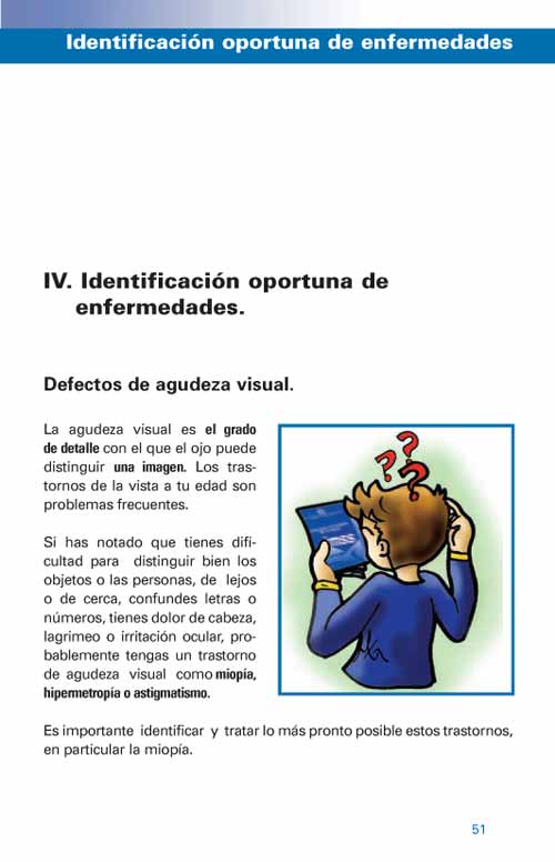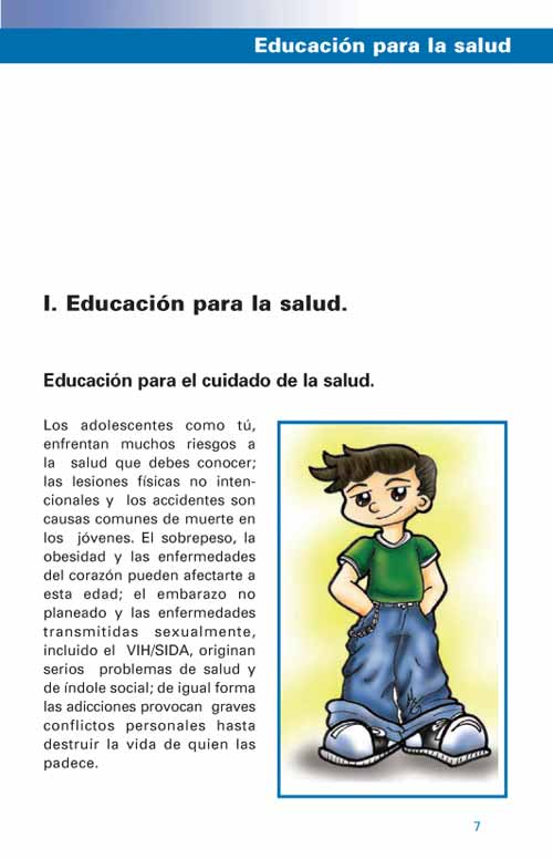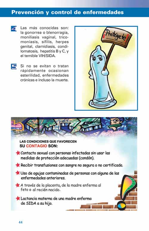 Esta guía se divide en los rubros de Educación para la salud, Nutrición, Prevención y control de enfermedades, Identificación oportuna de enfermedades, Salud reproductiva y Esquema de vacunación. Por lo que incluye varias ilustraciones referentes a estos aspectos de salud, no sólo a la sexualidad.