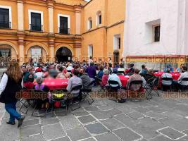 Esta vez no los recibieron en la puerta de la Casa de la Misericordia, sino que se colocaron mesas en el atrio de la iglesia Nuestra Señora del Carmen, aledaña a este sitio de ayuda y ahí degustaron sus alimentos.