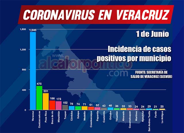 Mientras que en Actopan, Acula, Huayacocotla, Ixhuatlán de Madero, Ixhuatlancillo, Jalacingo, Nogales, Oteapan, Tezonapa y Tres Valles se mantienen 3 casos positivos en cada Municipio.