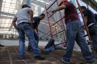 Un trabajador de la empresa GPG que se encontraba pegando vinil de identificación de la Universiada 2012 se cayó del andamio por no contar con equipo de seguridad.