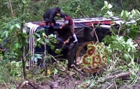 Cayó un autobús a la barranca de Teocelo; los cinco pasajeros lesionados; una señora grave