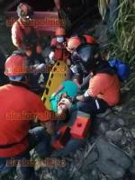 Paramédicos de Escuadrón Nacional de Rescate y de Protección Civil de Jilotepec, rescataron a una señora que resultó lesionada al volcar la camioneta en que viajaba cayendo de un puente a una profundidad de siete metros.