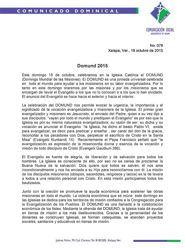 La colecta que se reúne este domingo se dedica para territorios de misión confiados a la Congregación para la Evangelización de los Pueblos