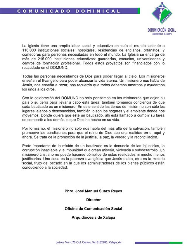 Celebra Iglesia Católica el Día Mundial de las Misiones