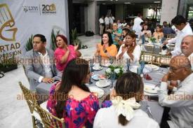 El ejercicio del periodismo merece el respeto y reconocimiento de todas y todos, porque se trata de una encomienda que visibiliza derechos y libertades en un ambiente en el que predomine la cultura de paz y legalidad, expresó la presidenta de la Mesa Directiva de la LXVI Legislatura del estado de Veracruz, diputada Adriana Esther Martínez Sánchez, durante el convivio con comunicadoras y comunicadores, así como representantes de medios de comunicación de la entidad, con motivo de la conmemoración del 7 de junio, Día de la Libertad de Expresión.