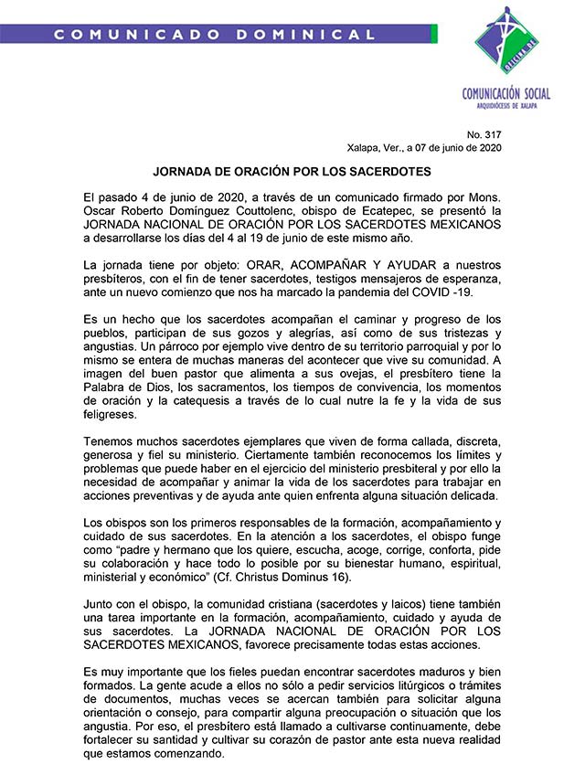 - Comunidad debe ayudar a formar y cuidar a sus párrocos: Arquidiócesis de Xalapa