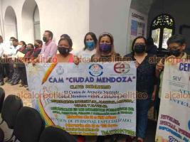 Docentes y padres de familia aprovecharon la visita que hizo el Gobernador al Palacio Municipal de Ciudad Mendoza y recordaron que a 13 años de venir gestionando un espacio para la atención de niños con autismo, Síndrome de Down, problemas psicomotrices y ceguera, entre otros, el CAM ocupa oficinas que prestan obreros en las antiguas instalaciones del sindicato de la CIVSA.