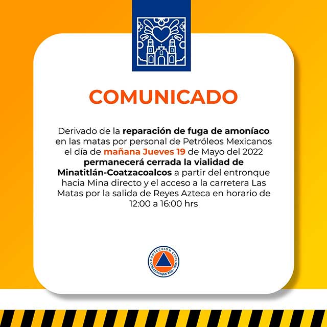 Es por ello que el paso vehicular de Minatitlán a Coatzacoalcos permanecerá cerrado de 12 del día a 4 de la tarde, según lo anunciado por personal de Protección Civil.