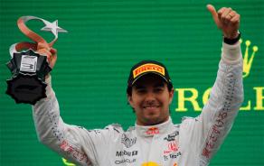 Pérez tuvo buen manejo de neumáticos en el monoplaza que para este fin de semana dejó los tradicionales colores rojo y azul para dar paso al blanco (como homenaje a Honda) y una buena entrada a los pits, situación que le permitió pelear por los primeros puestos en Estambul.