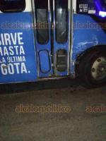 El operador impactó en la parte lateral a un camión urbano, número 1270 de la ruta Norte-Sur-Lomas 4, cuyo chofer, Rogelio Pintando Ortega, de 48 años de edad iba en aparente normalidad.
