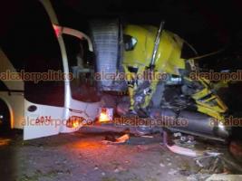 Choca autobús contra tráiler, en Cuitláhuac; no hay lesionados