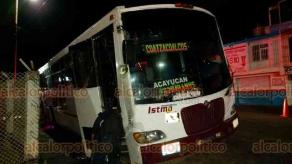 Al arribar al sitio elementos de la Policía Municipal observaron que una camioneta de tres toneladas, de color rojo, había colisionado contra un autobús de la línea Transporte del Istmo que se encontraba estacionado a un costado de la carretera, esto sobre el carril con dirección de norte a sur.
