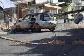 En calles de la colonia 21 de abril, en el puerto de Veracruz, se presentó un accidente vial protagonizado por un automóvil marca Kia, tipo Soul, que colisionó contra un poste de concreto de la CFE, el cual derribó y dejó sin energía eléctrica a dos manzanas de viviendas.