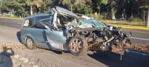 Aparatoso accidente automovilístico se registró este sábado en la mañana en la carretera federal 140 tramo Xalapa-Tamarindo a la altura del Cuartel Militar de El Lencero, donde una camioneta tipo SUV chocó por alcance en la parte trasera de un tráiler doble remolque, dejando al menos un herido y pérdida total de la unidad.