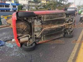 Chocan autos sobre puente; uno de ellos termina volcado, en Xalapa