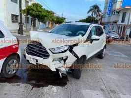 Un percance entre dos carros particulares y un taxi en calles de la colonia Flores Magón de la ciudad de Veracruz, dejó daños materiales cuantiosos y la presencia de los cuerpos de emergencia.
