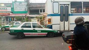Un accidente vial entre un taxi y un autobús de pasajeros se registró la tarde de este lunes sobre la avenida Atenas Veracruzana, en la colonia Revolución, a la altura de una pastelería ubicada en la zona.