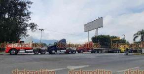 Operadores de transporte de carga se manifestaron la mañana de este martes ante la empresa Holcim Apasco en demanda de que se les tome en cuenta para los viajes, ya que se encuentran siendo desplazados por transportistas de Tlaxcala.