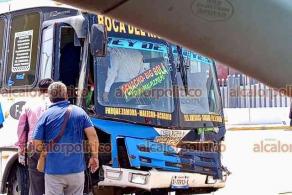 La mañana de este sábado en la avenida Juan Pablo Segundo, en Boca del Río, se registró el fuerte choque entre una camioneta particular y un camión del transporte público urbano, con saldo de al menos 3 heridos.