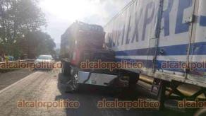 Ante ello, el chofer del torton que circulaba a mayor velocidad no alcanzó a esquivarlo y chocó por alcance con la caja tipo seca del tractocamión de la empresa Paquete Exprés.