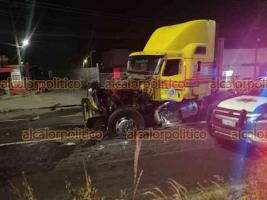 La incorporación imprudente de un tráiler procedente del Beneficio de Café a la carretera Xalapa-Veracruz provocó un aparatoso choque la noche de este lunes, en inmediaciones de la localidad de Dos Ríos.