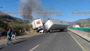 Las cajas quedaron obstruyendo ambos carriles, mientras el tracto se incendió, cuyo conductor logró ponerse a salvo aunque resultó con varias lesiones. El operador del camión tipo rabón también fue auxiliado por paramédicos de Caminos y Puentes Federales.