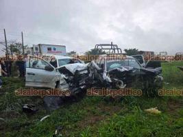 Una persona murió y cinco resultaron heridas, entre ellas tres policías por el choque entre una patrulla de la Secretaría de Seguridad Pública (SSP) y una camioneta particular sobre la carretera 145 Sayula de Alemán-Ciudad Alemán, a la altura del municipio de Juan Rodríguez Clara.