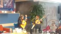 Los presentes, entre los que se encontraban niños interesados en la ciencia, además de escuchar sobre las experiencias, tanto del investigador como de los artistas, escucharon las melodías de este dúo de guitarras.