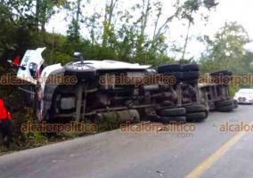 Un tracto-camión acoplado a un remolque tipo cisterna cargado con gasolina volcó la mañana de este sábado sobre a carretera federal Alazán-Canoas, que va desde Álamo hacia Pánuco por la ruta de Tantoyuca, en el norte de la entidad, misma que fue cerrada.