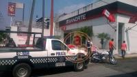 La sucursal de la institución bancaria "Banorte", ubicada entre las calles Oriente 6 y Sur 27, en Orizaba, fue cerrada luego de que dos sujetos la asaltaron; personal del banco colocaron letreros en los cuales daban a conocer que sería atendida la gente en la sucursal del centro de la ciudad.