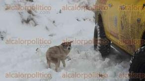 Este jueves, a los 4 mil metros sobre el nivel del mar, el perro de las nieves salió al encuentro de quienes hacían labor de limpieza en el camino; así como de los turistas que arribaron a ver la primera nevada del año en el Pico de Orizaba.