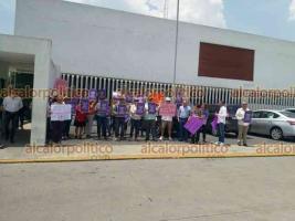 Con una manifestación ante las instalaciones de la Fiscalía, compañeros de trabajo de la maestra Verónica “N”, quien fuera asesinada el pasado 27 de febrero cuando salía del plantel en donde laboraba, exigieron se busque a la presunta culpable.